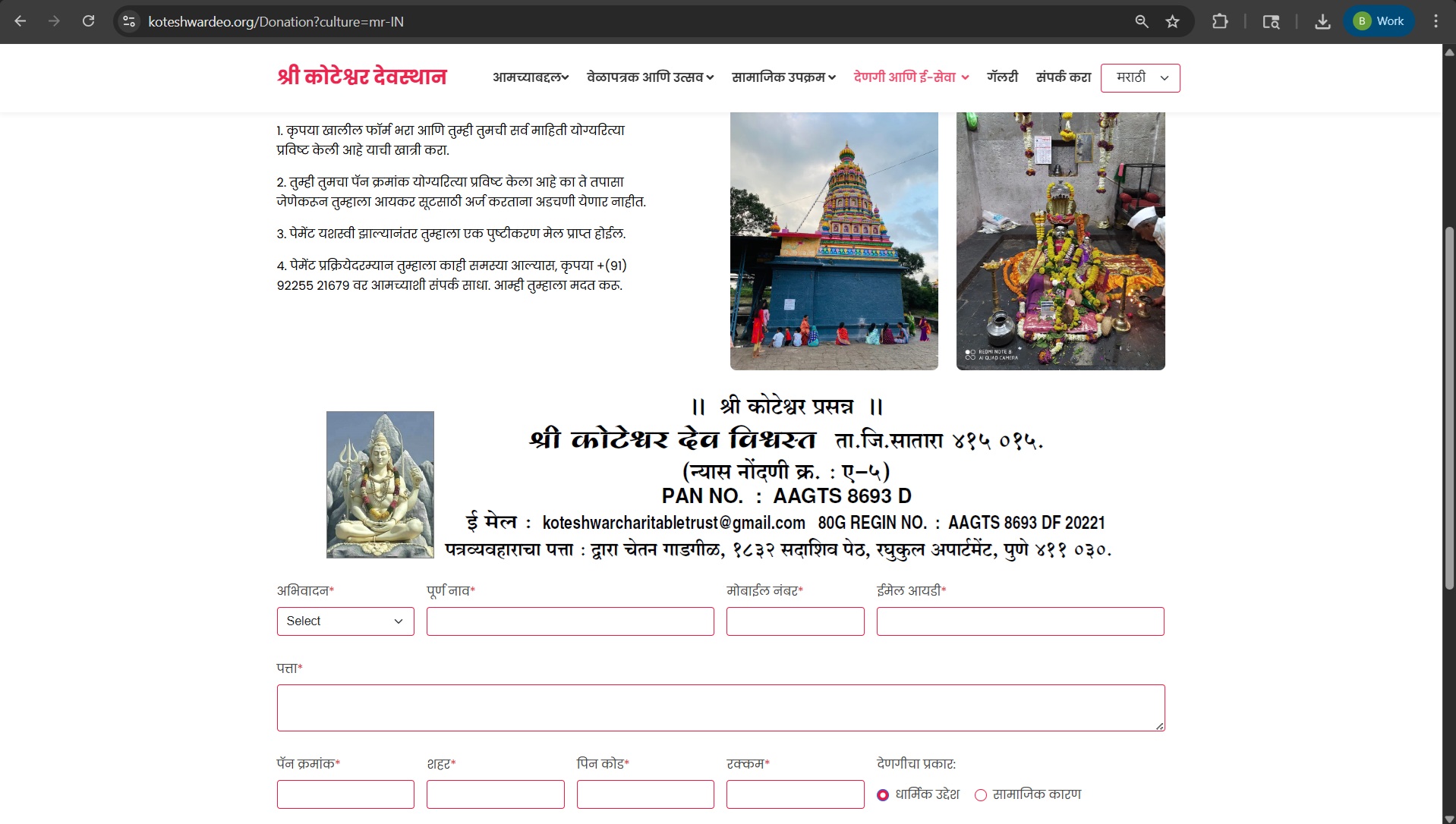 The website provides detailed insights into the temple’s history, spiritual significance, rituals & daily activities while also highlighting the trust’s charitable initiatives such as education support, healthcare services, food distribution & community welfare programs.