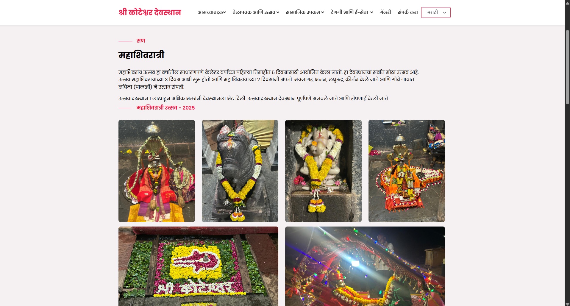 A comprehensive digital platform designed to manage, showcase & support the religious, cultural & charitable activities of a temple trust. It serves as a bridge between the temple administration & devotees, enabling easy access to information, services & donation facilities from anywhere.